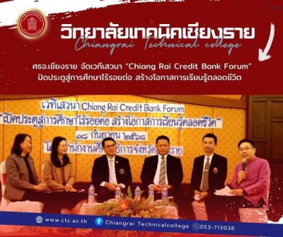 วันพฤหัสบดีที่ 18 กันยายน 2568 ✨✨วิทยาลัยเทคนิคเชียงราย✨✨นายชัชวาล วงศ์ใหม่ ผู้อำนวยการวิทยาลัยเทคนิคเชียงราย ได้รับเกียรติให้เข้าร่วม เวทีเสวนา 'Chiang rai Credit Bank Forum เปิดประตูสู่การศึกษาไร้รอยต่อ สร้างโอกาสการเรียนรู้ตลอดชีวิต' โดยนางปัทมา วีระวานิช นายกสภาสถาบันการอาชีวศึกษาภาคกลาง กรรมการผู้ทรงคุณวุฒิ สถาบันคุณวุฒิวิชาชีพ (องค์การมหาชน) เป็นประธานเปิดและปาฐกถาพิเศษ พร้อมด้วย พ.จ.ต.ฉลอง อ่อนนวน รองศึกษาธิการจังหวัดเชียงราย กล่าวรายงาน และผู้เข้าร่วมเสวนาประกอบด้วย ผู้แทนหน่วยงานทางการศึกษา ผู้บริหารสถานศึกษา ข้าราชการครูและบุคลากรทางการศึกษา เข้าร่วมการเสวนาในครั้งนี้ ในการนี้ นายชัชวาล วงศ์ใหม่ ผู้อำนวยการวิทยาลัยเทคนิคเชียงราย ได้รับมอบเกียรติบัตร จากนางสาวจันทร์แสง พรมสี รองศึกษาธิการจังหวัดเชียงราย หลังจากปิดการเสวนา