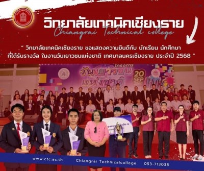3 สัปดาห์ ที่ผ่านมาระหว่างวันที่ 19 - 21 กันยายน 2568 ✨✨วิทยาลัยเทคนิคเชียงราย✨✨นายชัชวาล วงศ์ใหม่ ผู้อำนวยการวิทยาลัยเทคนิคเชียงราย มอบหมายให้นางสาวไปรยา จาตม ครูที่ปรึกษา พร้อมด้วยตัวแทนนักเรียน นักศึกษา เข้าร่วมการอบรมเชิงปฏิบัติการ เสริมสร้างทักษะเยาวชนในการแข่งขัน โครงการนวัตกรรมสีเขียวสู่ความยั่งยืนในยุค AI เพื่อพัฒนาชุมชนหรือผู้ประกอบการ โดยใช้วิทยาศาสตร์ เทคโนโลยี และนวัตกรรม 🧪🔬⚙️🖥 โครงการ 'กล้าใหม่...ใฝ่รู้ ' ปีที่ 20 (ปี 2568) ระดับมัธยมศึกษา และอาชีวศึกษา ระหว่างวันที่ 19 - 21 กันยายน 2568 ณ ศูนย์ฝึกอบรม ธนาคารไทยพาณิชย์ หาดตะวันรอน จังหวัดชลบุรี