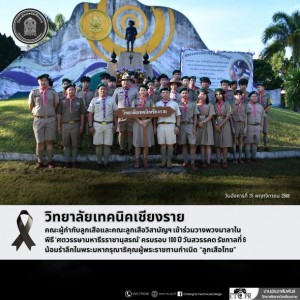 5 วัน ที่ผ่านมาพิธี ศตวรรษามหาธีรราชานุสรณ์ ครบรอบ 100 ปี วันสวรรคต รัชกาลที่ 6 น้อมรำลึกพระมหากรุณาธิคุณผู้พระราชทานกำเนิดลูกเสือไทย วันอังคารที่ 25 พฤศจิกายน 2568 เวลา 08.30 น ✨✨วิทยาลัยเทคนิคเชียงราย✨✨นายชัชวาล วงศ์ใหม่ ผู้อำนวยการวิทยาลัยเทคนิคเชียงราย มอบหมายให้ คณะครูผู้กำกับลูกเสือและลูกเสือวิสามัญฯ ร่วมวางพวงมาลา กล่าวถวายราชสดุดี และร่วมยืนสงบนิ่งเพื่อรำลึกถึงพระมหากรุณาธิคุณขององค์พระมหาธีรราชเจ้า พร้อมกันนี้ยังมีการจัดนิทรรศการเกี่ยวกับพระราชประวัติและกิจการลูกเสือไทย เพื่อให้เยาวชนและผู้เข้าร่วมงานได้ศึกษาและตระหนักถึงคุณค่าของการบำเพ็ญประโยชน์และความมีระเบียบวินัยในแบบลูกเสือ จัดขึ้นโดยสำนักงานลูกเสือจังหวัดเชียงราย ซึ่งได้รับเกียรติจากนายประสงค์ หล้าอ่อน รองผู้ว่าราชการจังหวัดเชียงราย เป็นประธานในพิธีถวายพวงมาลาและถวายราชสดุดี พระบาทสมเด็จพระมงกุฎเกล้าเจ้าอยู่หัว (รัชกาลที่ 6) เนื่องในงาน ศตวรรษามหาธีรราชานุสรณ์ ครบรอบ 100 ปี วันคล้ายวันสวรรคต ประจำปี 2568 ณ ศูนย์พัฒนาบุคลากรทางการลูกเสือยุวกาชาดและกิจกรรมเยาวชนจังหวัดเชียงราย ต.แม่ยาว อ.เมืองเชียงราย