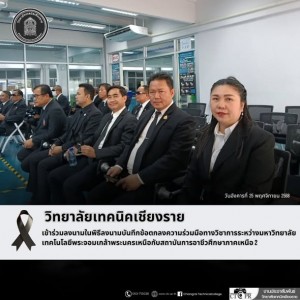 วันอังคารที่ 25 พฤศจิกายน 2568 ✨✨วิทยาลัยเทคนิคเชียงราย✨✨ นายชัชวาล วงศ์ใหม่ ผู้อำนวยการวิทยาลัยเทคนิคเชียงราย พร้อมด้วยนางกนิษฐา คลังแสง รองผู้อำนวยการ ฝ่ายวิชาการ เข้าร่วมลงนามในพิธีลงนามบันทึกข้อตกลงความร่วมมือทางวิชาการระหว่างมหาวิทยาลัยเทคโนโลยีพระจอมเกล้าพระนครเหนือกับสถาบันการอาชีวศึกษาภาคเหนือ 2 ในวันอังคารที่ 25 พฤศจิกายน 2568 ณ ห้องราชพฤกษ์ อาคารนวมินทรราชินี มหาวิทยาลัยเทคโนโลยีพระจอมเกล้าพระนครเหนือ