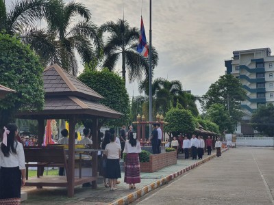 วันจันทร์ที่ 7 กรกฎาคม 2568 🌟🌟วิทยาลัยเทคนิคเชียงราย🌟🌟ภาพบรรยากาศคณะครูเวรประจำจุดทางเข้าตามมาตรการการดูแลความปลอดภัยในสถานศึกษา นอกสถานศึกษา 7 ข้อ ตามนโยบายของสำนักงานคณะกรรมการอาชีวศึกษา และกิจกรรมเข้าแถวหน้าเสาธงตอนเช้าประจำภาคเรียนที่ 1 ปีการศึกษา 2568 พร้อมกันนี้คณะครูแจ้งข่าวประชาสัมพันธ์หน้าเสาธง ณ บริเวณหน้าเสาธงวิทยาลัยเทคนิคเชียงราย