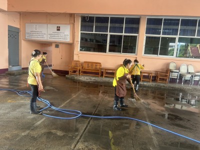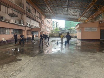 💪👷ภาพบรรยากาศการเตรียมความพร้อมสถานที่พิธีครอบครูช่างและพิธีไหว้ครู นำทีมโดยครูธนกร เลิศสกุณี หัวหน้างานอาคารสถานที่ นักการ แม่บ้าน นักเรียน นักศึกษา วิทยาลัยเทคนิคเชียงราย