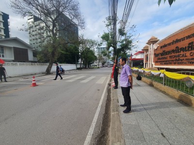 วันศุกร์ที่ 30 พฤษภาคม 2568 🌟🌟🌟ภาพบรรยากาศคณะครูเวรประจำจุดทางเข้าตามมาตรการการดูแลความปลอดภัยในสถานศึกษา นอกสถานศึกษา 7 ข้อ ตามนโยบายของสำนักงานคณะกรรมการอาชีวศึกษา ตอนเช้าประจำภาคเรียนที่ 1 ปีการศึกษา 2568 ณ ประตูทางเข้าวิทยาลัยเทคนิคเชียงราย