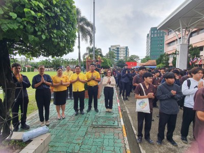 วันจันทร์ที่ 23 มิถุนายน 2568 🌟🌟วิทยาลัยเทคนิคเชียงราย🌟🌟ภาพบรรยากาศคณะครูเวรประจำจุดทางเข้าตามมาตรการการดูแลความปลอดภัยในสถานศึกษา นอกสถานศึกษา 7 ข้อ ตามนโยบายของสำนักงานคณะกรรมการอาชีวศึกษา และกิจกรรมเข้าแถวหน้าเสาธงตอนเช้าประจำภาคเรียนที่ 1 ปีการศึกษา 2568 พร้อมกันนี้คณะครูแจ้งข่าวประชาสัมพันธ์หน้าเสาธง ณ บริเวณหน้าเสาธงวิทยาลัยเทคนิคเชียงราย