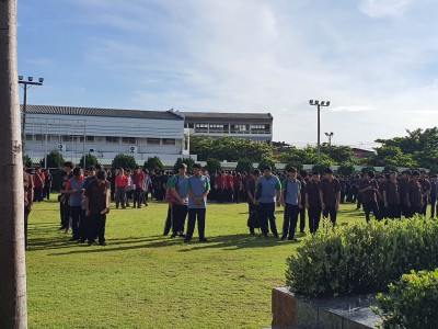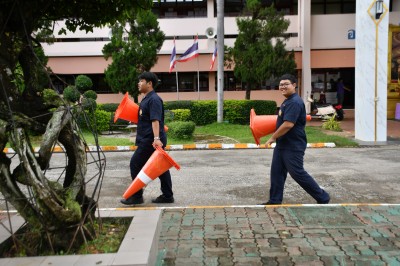 💪👷ภาพบรรยากาศการเตรียมความพร้อมสถานที่พิธีครอบครูช่างและพิธีไหว้ครู นำทีมโดยครูธนกร เลิศสกุณี หัวหน้างานอาคารสถานที่ นักการ แม่บ้าน นักเรียน นักศึกษา วิทยาลัยเทคนิคเชียงราย