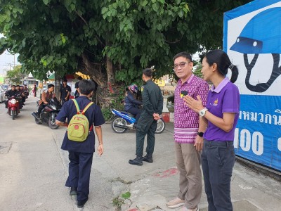 วันพฤหัสบดีที่ 22 พฤษภาคม 2568 🌟🌟🌟ภาพบรรยากาศคณะครูเวรประจำจุดทางเข้าตามมาตรการการดูแลความปลอดภัยในสถานศึกษา นอกสถานศึกษา 7 ข้อ ตามนโยบายของสำนักงานคณะกรรมการอาชีวศึกษา และกิจกรรมเข้าแถวหน้าเสาธงตอนเช้าประจำภาคเรียนที่ 1 ปีการศึกษา 2568 พร้อมแจ้งข่าวประชาสัมพันธ์หน้าเสาธง ณ บริเวณหน้าเสาธงวิทยาลัยเทคนิคเชียงราย
