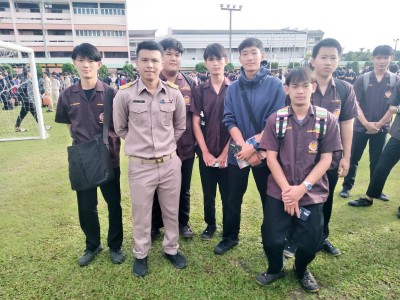 ภาพบรรยากาศการเข้าแถวหน้าเสาธงตอนเช้า ประจำภาคเรียนที่ ๑ ปีการศึกษา ๒๕๖๖ (ประจำสัปดาห์ที่ ๑๖) ในพฤหัสบดีที่ ๓๑ สิงหาคม ๒๕๖๖ ณ บริเวณหน้าเสาธง วิทยาลัยเทคนิคเชียงราย โดยมี ดร.ศรากร บุญปถัมภ์ ผู้อำนวยการวิทยาลัยเทคนิคเชียงราย ได้พบปะพูดคุยกับนักเรียนนักศึกษาหน้าเสาธง