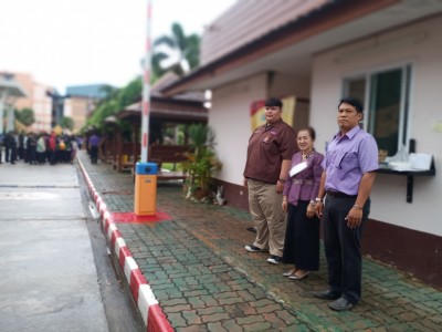 ดร.ศรากร บุญปถัมภ์ ผู้อำนวยการฯ พร้อมด้วย คณะผู้บริหาร ครู และบุคลากรทางการศึกษา ร่วมมือ ร่วมใจ ในการดูแล และอำนวยความสะดวกด้านความปลอดภัย และสุขภาพ แก่นักเรียน นักศึกษา ทุกวัน