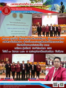 ดร.ศรากร บุญปถัมภ์ ผู้อำนวยการวิทยาลัยเทคนิคเชียงราย มอบนางกนิษฐา คลังแสง รองผู้อำนวยการฝ่ายวิชาการ วิทยาลัยเทคนิคเชียงราย ร่วมพิธีเปิดโครงการ การฝึกอบรมการเรียนหลักสูตรออนไลน์ 'การใช้และการดูแลรักษาเครื่องมือวัดด้านมิติ' ให้กับนักเรียน นักศึกษา ทุกระดับชั้น ของแผนกช่างกลโรงงาน ณ ห้องประชุมพระวิษณุกรรม 1 ชั้น 3 อาคารเฉลิมพระเกียรติ วิทยาลัยเทคนิคเชียงราย