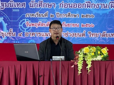 วันพฤหัสบดีที่ 7 กันยายน 2566 เวลา 15.00 น. ดร.ศรากร บุญปถัมภ์ ผู้อำนวยการวิทยาลัยเทคนิคเชียงราย มอบหมายให้ นางกนิษฐา คลังแสง รองผู้อำนวยการฝ่ายวิชาการ และนายสรรเพชญ สุขรัตน์ หัวหน้างานอาชีวศึกษาระบบทวิภาคี ดำเนินการปฐมนิเทศนักเรียน/นักศึกษา ก่อนออกฝึกงาน/ฝึกอาชีพ ภาคเรียนที่ 2 ปีการศึกษา 2566 โดยได้รับเกียรติจาก นายเมธาสิทธิ์ เจริญกิจ ครูฝึกช่างเทคนิค บริษัทโตโยต้า เชียงราย เป็นวิทยากรบรรยายให้ความรู้ ณ ห้องประชุมชั้น 4 อาคารแผนกวิชาช่างยนต์ วิทยาลัยเทคนิคเชียงราย