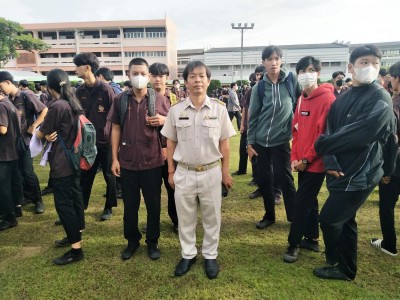 ดร.ศรากร บุญปถัมภ์ ผู้อำนวยการฯ พร้อมด้วย คณะผู้บริหาร ครู นักเรียนนักศึกษาลูกเสือ ตลอดบุคลากรทางการศึกษา ร่วมมือ ร่วมใจ ในการดูแล และอำนวยความสะดวกด้านความปลอดภัย และสุขภาพ แก่นักเรียน นักศึกษา ทุกวัน