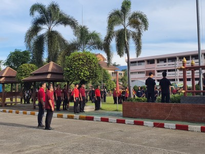 วันอังคารที่ 19 สิงหาคม 2568 🌟🌟วิทยาลัยเทคนิคเชียงราย🌟🌟ภาพบรรยากาศคณะครูเวรประจำจุดทางเข้าตามมาตรการการดูแลความปลอดภัยในสถานศึกษา นอกสถานศึกษา 7 ข้อ ตามนโยบายของสำนักงานคณะกรรมการอาชีวศึกษา และกิจกรรมเข้าแถวหน้าเสาธงตอนเช้าประจำภาคเรียนที่ 1 ปีการศึกษา 2568 พร้อมกันนี้คณะครูแจ้งข่าวประชาสัมพันธ์หน้าเสาธง ณ บริเวณหน้าเสาธงวิทยาลัยเทคนิคเชียงราย